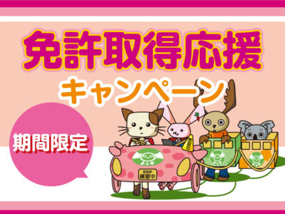竹原自動車学校では、お得なキャンペーン盛りだくさん! キャンペーン情報をうまく活用して、お得に免許をとろう!